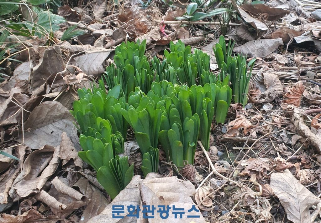 메마른 낙엽이 황량한 겨울을 감싸고 있지만 계절은 어김없이 봄 기운을 전해 준다. 포근한 설날에 상사초가 살며시 새싹을 내밀었다. 봄은 새로운 희망을 품게 하는 계절이다.