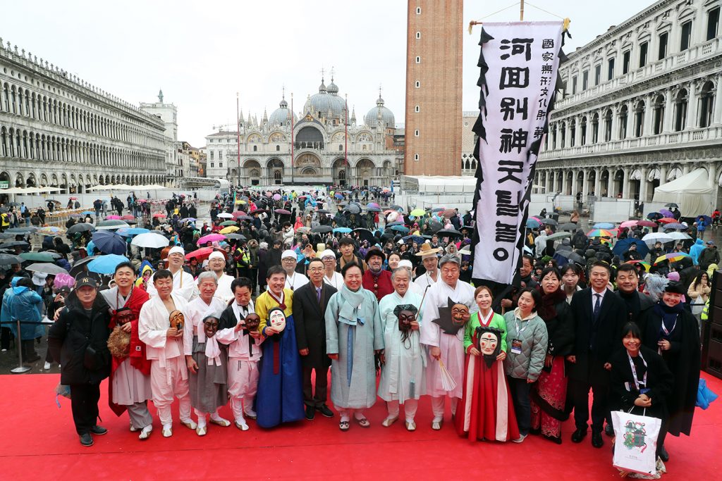 산마르코 광장에서 신명 나는 한마당으로 전 세계 관람객 매‘마르코폴로의 여행’을 주제로 10일간 열린 이탈리아 베네치아 카니발 축제의 대미를 장식하는 폐막식에서 안동이 자랑하는 세계유산 하회별신굿탈놀이 무대가 펼쳐졌다.