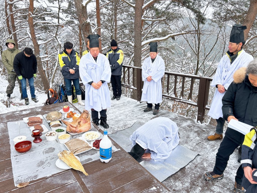 여량면에서는 마을의 안녕을 기원하고 화재를 막기 위해 매년 염장봉에 올라 소금 단지를 묻는 ‘염장봉 제례’가 여량면 의용소방대 주관으로 지역 주민 등 50명이 참석한 가운데 진행됐다.