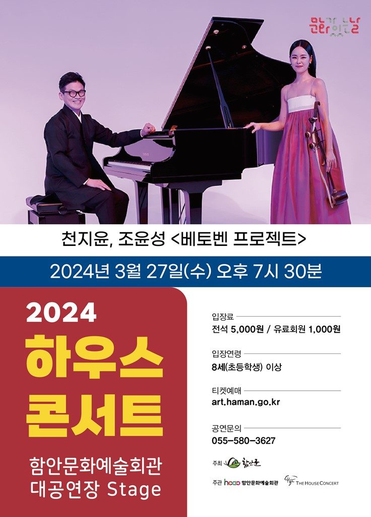 한편, 하우스콘서트는 객석이 아닌 무대 바닥에 앉아 연주자와 가장 가까운 거리에서 연주를 보고, 듣고, 악기의 떨림을 온몸으로 직접 느껴볼 수 있는 생생한 음악의 현장으로, 함안문화예술회관에서 2013년 도입 이래 현재까지 관객들의 꾸준한 사랑을 받고 있는 대표 공연이다.