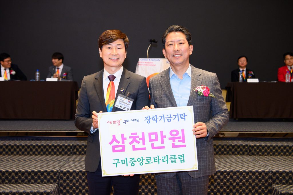 홈 뉴스 구미중앙로타리클럽, 지역인재육성 장학기금 3천만 원 기탁 뉴스문화문화마당사진뉴스지자체 구미중앙로타리클럽, 지역인재육성 장학기금 3천만 원 기탁 문화관광뉴스 - 2024년 4월 2일 공유 Facebook Twitter 이근대 기자 lgd@newsone.co.kr 좌 지정구 구미중앙로타리클럽 30년사 추진위원장, 우 김장호 구미시장 구미중앙로타리클럽(회장 김병욱)은 지난 1일 금오산 호텔에서 창립 30주년 기념식을 열고 미래 인재 육성과 교육 발전을 위한 장학기금 3,000만 원을 구미시에 전달했다.