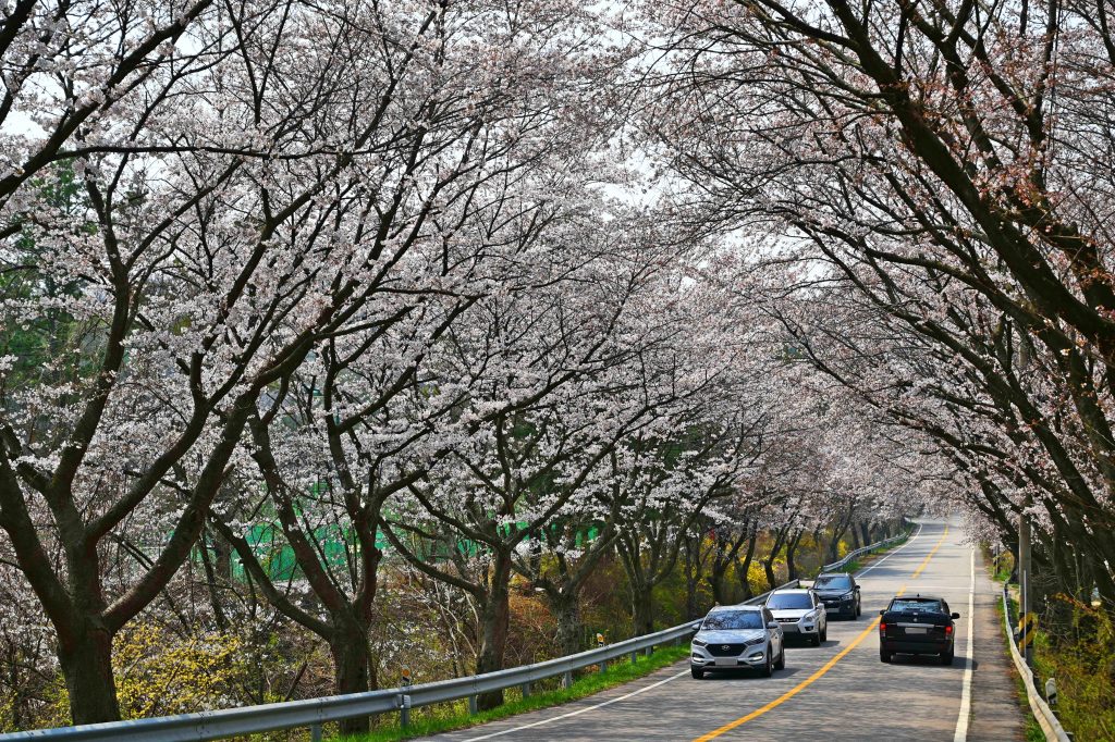 옛 37번 국도변인 옥천읍 교동저수지에서 시작해 군북면 국원리를 지나 소정리까지 8km 정도 이어지는 이 길은 봄이면 만개한 벚꽃이 장관을 이룬다.