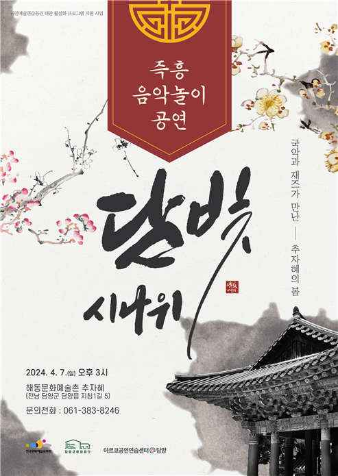 (재)담양군문화재단(이사장 이병노)에 따르면 공연예술연습공간 대관 활성화 프로그램 즉흥음악놀이 공연 ‘담빛 시나위’를 4월 7일 오후 3시 해동문화예술촌 추자혜에서 선보인다고 밝혔다.