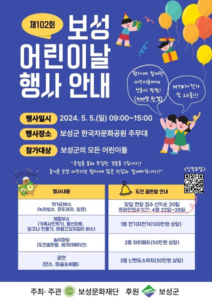 이번 어린이날 행사는 제47회 보성다향대축제 기간에 열리며 (사)보성문화재단이 주관한다.