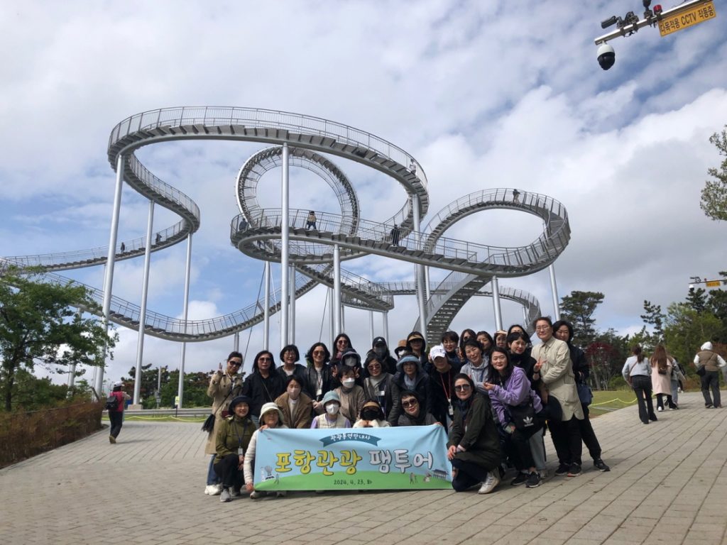 <사진 있음> 사진. 부산 영남지역에서 활동하는 관광 통역 안내사들이 23일 포항 팸투어에 참여했다. 사진은 스페이스워크 앞.