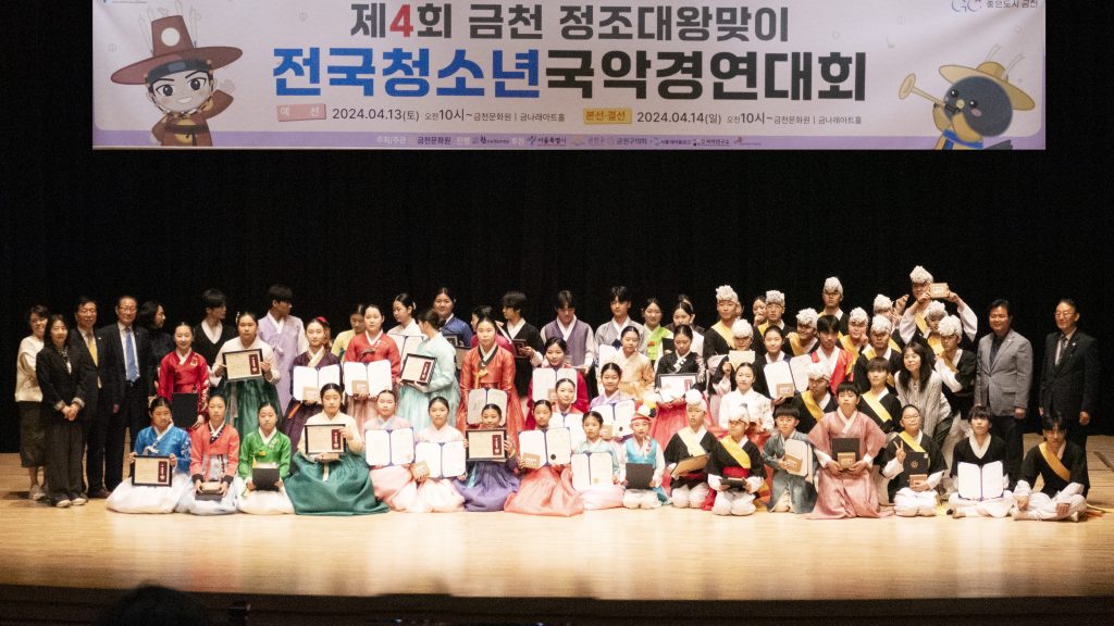 ‘제4회 금천 정조대왕맞이 전국청소년국악경연대회’는 전국 초·중·고교생 및 청소년을 대상으로 3월 25일부터 4월 9일까지 경연참가 접수를 받아 13일 금천문화원, 금나래아트홀에서 예선을 치렀으며, 14일 본선과 결선을 통해 최종 경연 실력자를 선발, 시상하며 대장정의 막을 내렸다.