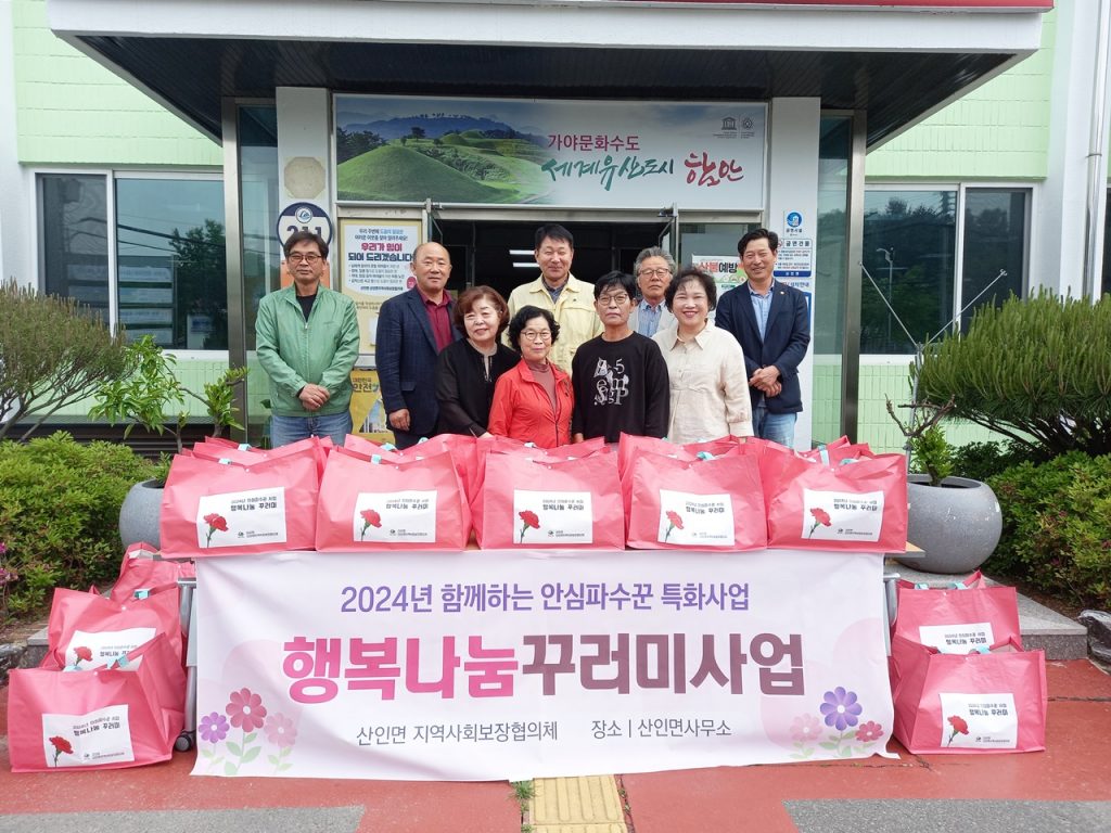 산인면 특화사업인 ‘행복나눔꾸러미사업’은 따뜻한 이웃사랑을 실천하고 더불어 살아가는 지역공동체를 만들고자 추진됐다. 이날에는 쓸쓸하게 어버이날을 맞이하는 고령의 홀로어르신 댁을 방문해 존경과 감사의 마음을 담아 음식 꾸러미 세트(국, 죽, 김, 라면, 고추장, 쌀국수, 우유 등)를 전달했다.