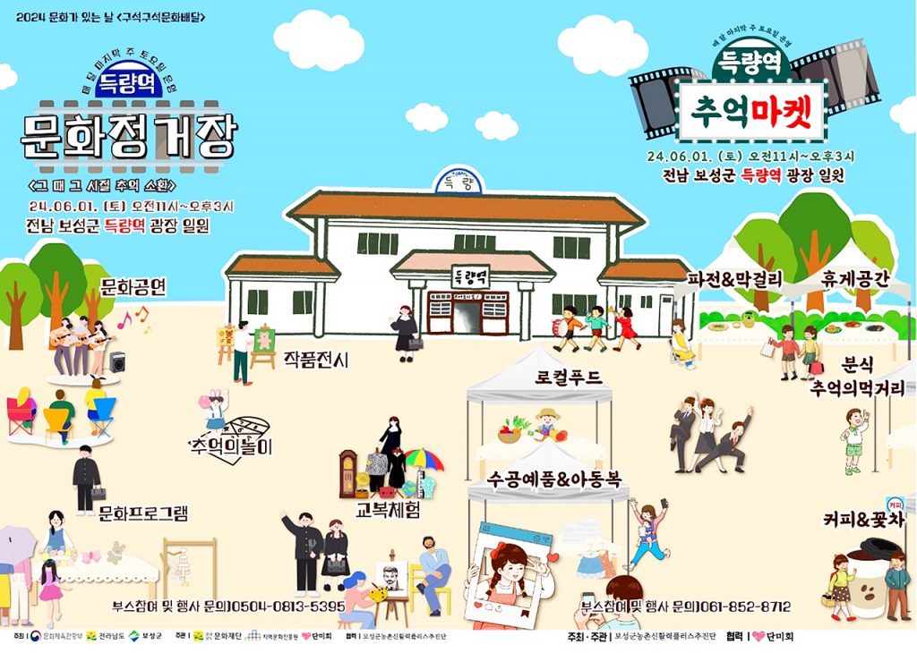 ‘2024 문화가 있는 날 구석구석 문화배달’은 매달 문화가 있는 날(마지막 주 수요일) 주간 토요일에 득량역 추억의 거리에서 <득량역 문화정거장>과 보성 판소리성지에서 <문화가 있는 날 상설 락(樂)!> 총 2개의 문화행사로 열린다.
