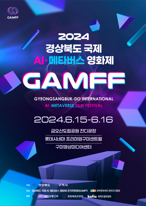국내 최초 AI‧메타버스 영화제 ‘2024 경상북도 국제 AI․메타버스 영화제(이하 ‘GAMFF’)‘가 15일 구미 금오산도립공원 잔디광장에서 화려한 막을 연다.※ GAMFF : Gyeongsangbuk-do international AI․Metaverse Film Festival