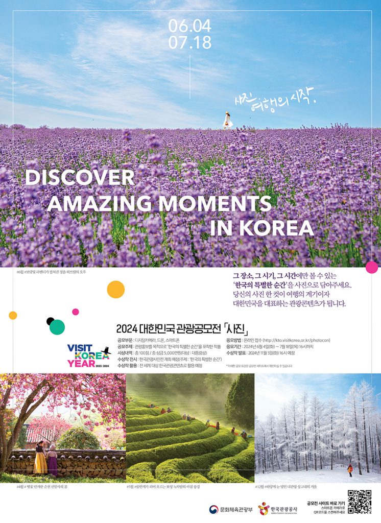 한국관광공사(사장직무대행 서영충, 이하 공사)는 4일부터 다음 달 18일까지 ‘2024 대한민국 관광공모전(사진 부문)*을 개최한다.
