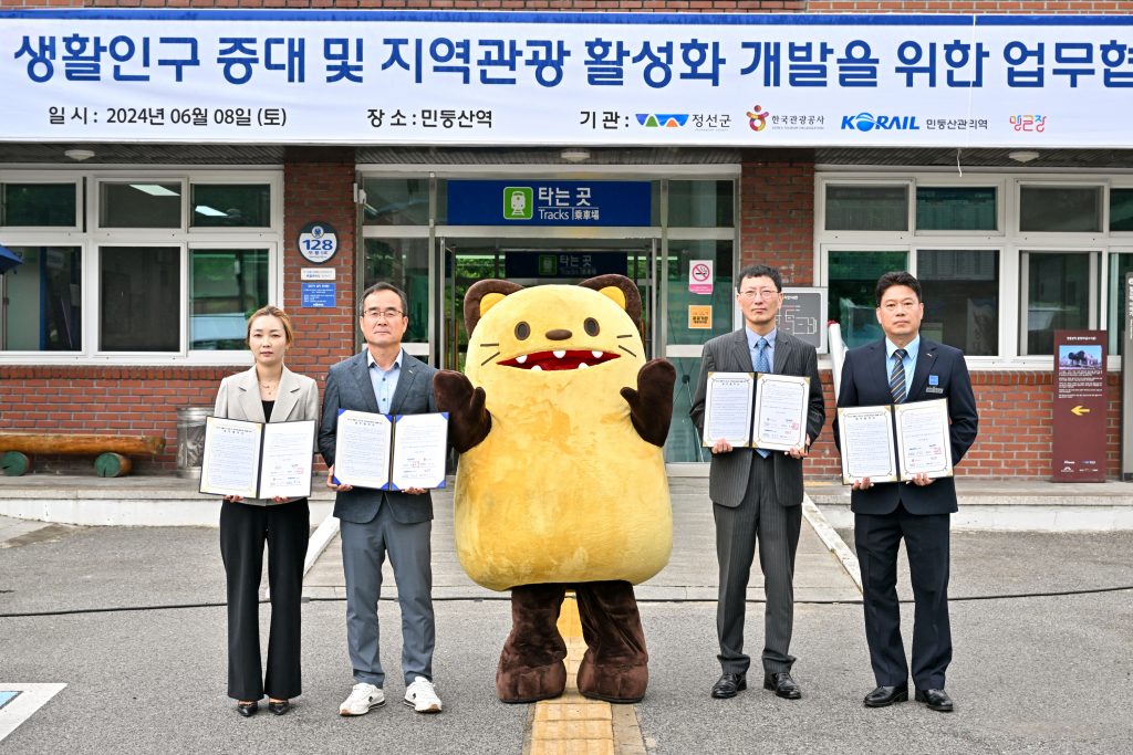 이에 8일 민둥산역에서 강선구 정선부군수를 비롯한 제상원 한국관광공사 강원지사장, 박광일 한국철도공사 민둥산관리역장, 최진아 정선군 관광두레 맹글장 대표 등 4명이 참석한 가운데 정선군 지역관광 및 철도여행 활성화는 물론 특색있는 관광 상품을 개발하기 위한 업무협약을 체결했다.