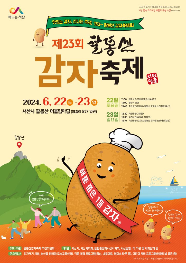 시는 22일부터 23일까지 팔봉산 어울림마당에서 제23회 팔봉산 감자축제가 개최된다고 18일 밝혔다.