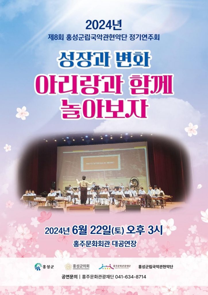 홍성군립국악관현악단 제8회 정기연주회가 오는 23일 토요일 오후 3시 홍주문화회관 대공연장에서 개최된다.