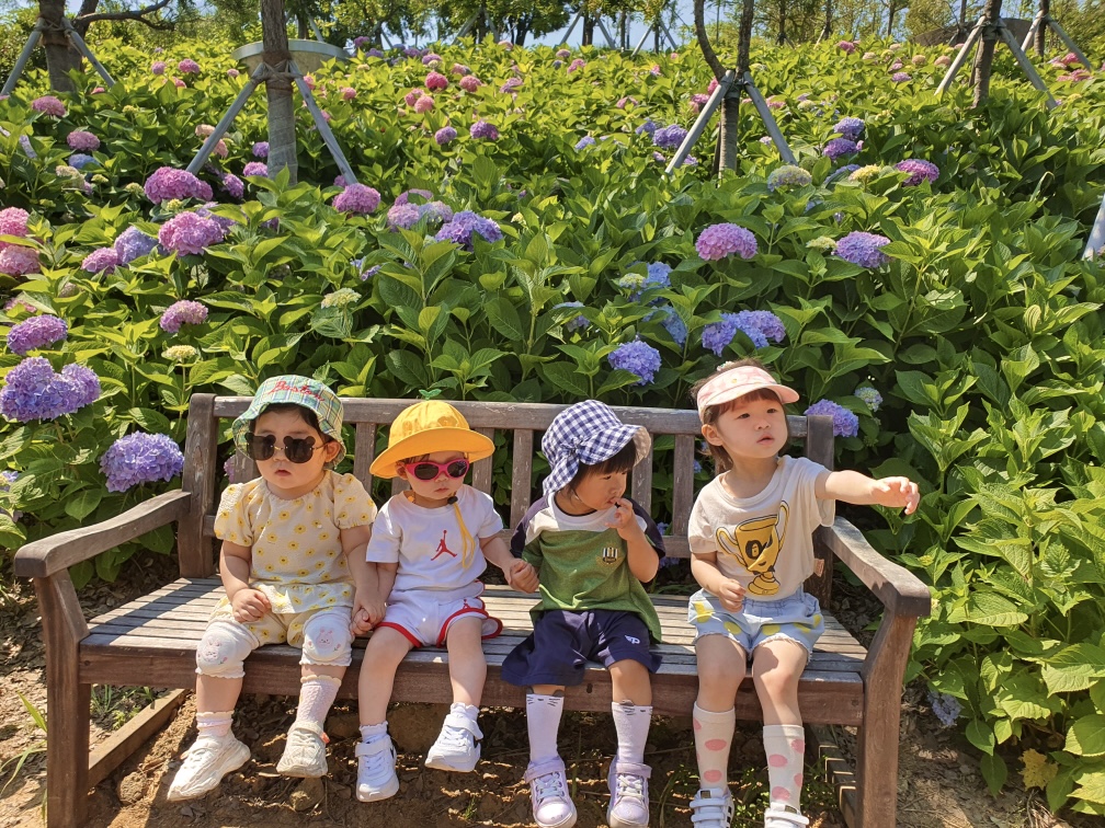 다온숲에서는 6월 말까지 팝업, 모닝스타, 베레나, 엔들레스썸머, 핌퍼넬, LA드림인 등 17종의 형형색색(파랑, 빨강, 보라, 분홍 등)의 아름다운 수국을 감상할 수 있다.
