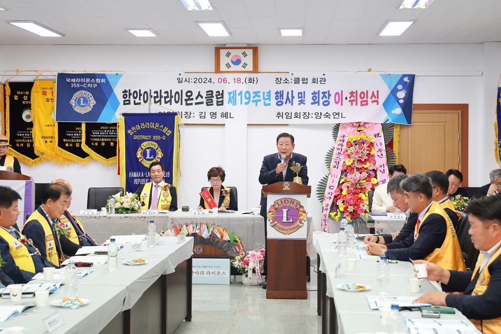 함안아라라이온스클럽은 지난 18일 함안라이온스클럽 회관에서 제19주년 창립기념 행사 및 회장 이·취임식을 개최했다.
