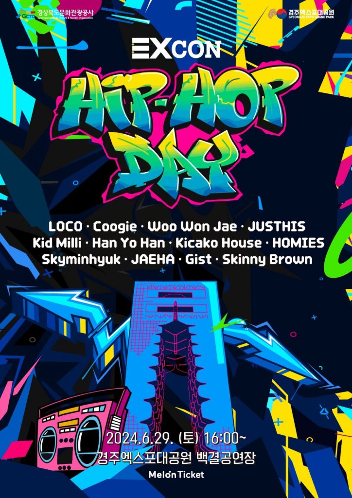 먼저 오는 29일(토)에는 경주엑스포대공원의 새로운 브랜드 콘서트 1탄 <EXCON – HIPHOP DAY>가 백결공연장에서 진행된다.