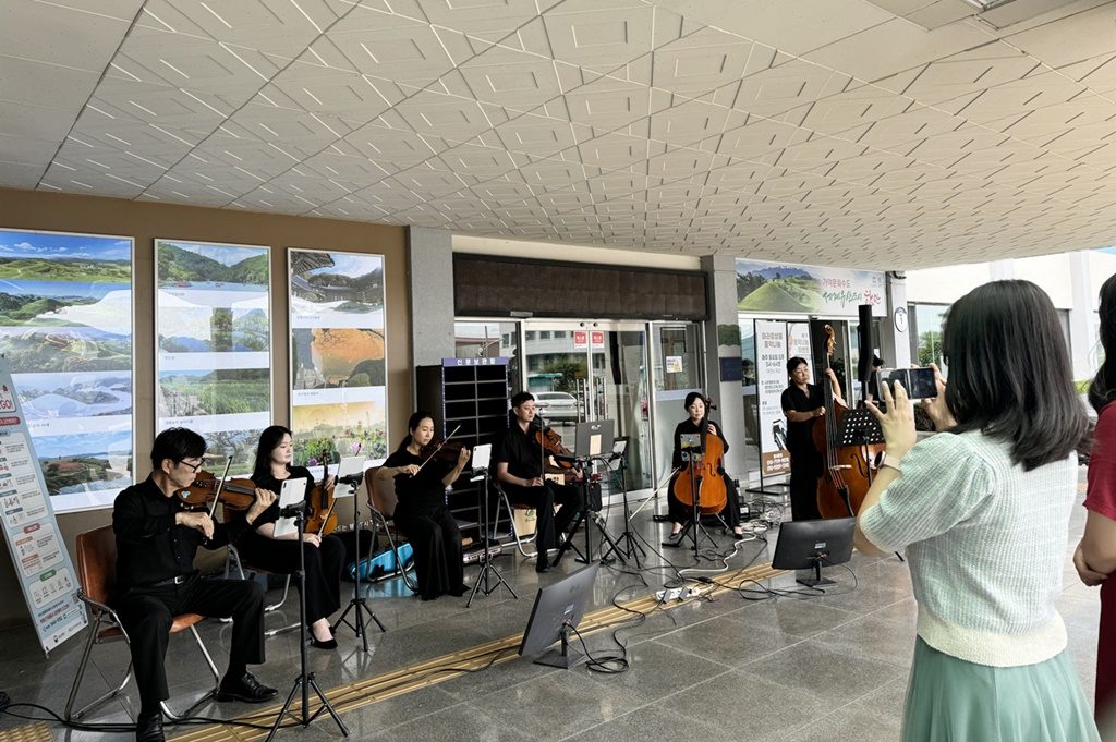 홈 공연 함안군청에 울려 퍼진 아름다운 선율’ 문화공연뉴스지자체 함안군청에 울려 퍼진 아름다운 선율’ 문화관광뉴스 - 2024년 6월 26일 공유 Facebook Twitter 아라앙상블의 작은음악회 이명이 기자 lmy@newsone.co.kr 26일 오전 함안군청 본관 앞에서 ‘아라앙상블(대표 윤성수)’의 작은음악회가 열렸다. 클래식, 영화음악 OST, 가곡 등 다양한 장르의 연주를 들려주며, 군 직원들을 비롯해 군청을 방문한 군민들이 여유를 느낄 수 있는 ‘일상의 쉼표’ 같은 시간을 선물했다.