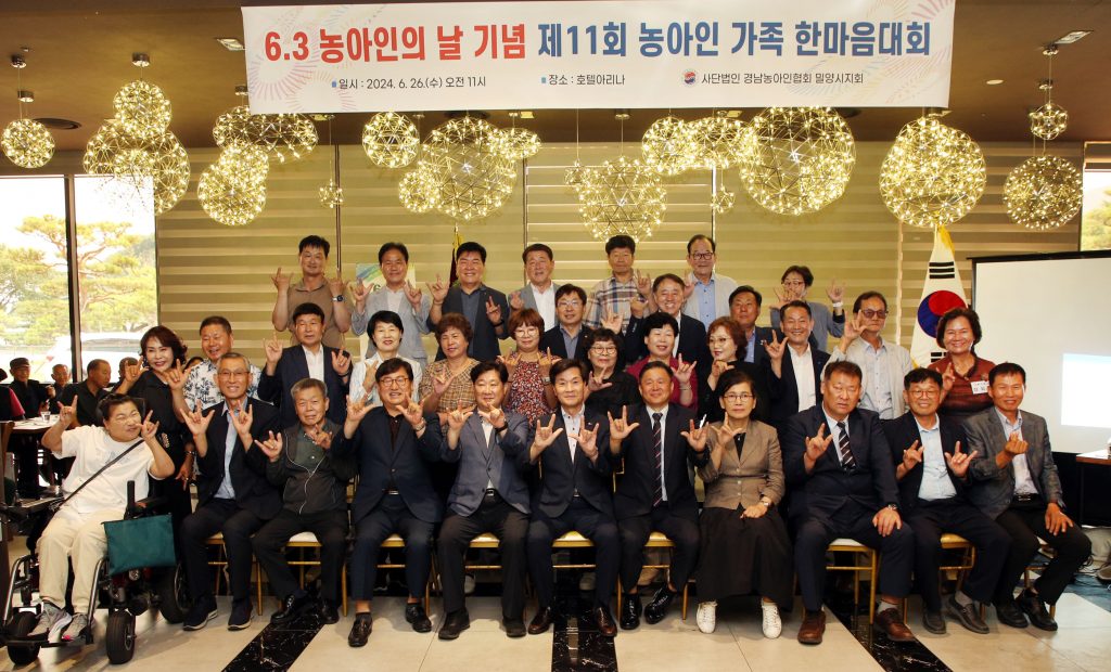 밀양시(시장 안병구)는 지난 26일 호텔아리나에서 사)경남농아인협회 밀양지회(지회장 김창섭) 주관으로‘6.3 농아인의 날 기념 제11회 농아인 가족 한마음대회’을 개최했다고 밝혔다.