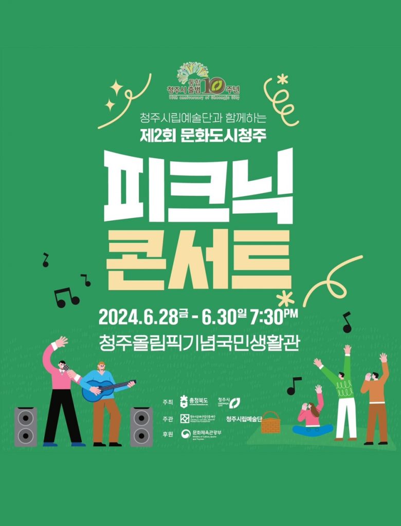한편, 제2회 문화도시 청주‘피크닉 콘서트’는 통합 청주시 출범 10주년을 기념하고 청주시립예술단과 청주시문화산업진흥재단이 함께 준비했다.