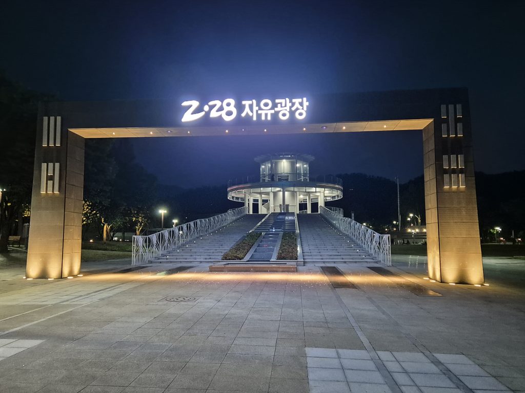 2·28자유광장 표지물은 길이 14.5m, 높이 6m의 짙은 검은빛 계열의 화강석으로 장엄하고 무게감을 느낄 수 있으며, 태극기의 건곤감리를 적용해 2·28정신과 한국적 이미지를 연출했다.