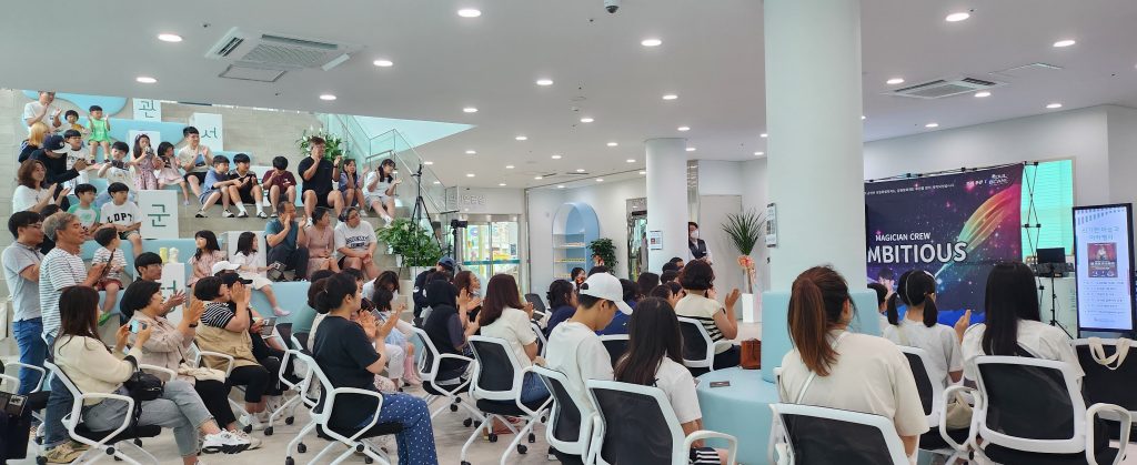 한편, 지난달 8일 군립도서관 1층 로비에서 유아, 초등학생 가족을 대상으로 책을 읽는 이유, 빌린 책 관리 방법, 도서관의 역할 등을 쉽게 마술로 알려주는 독서 권장 소통매직 쇼 ‘책읽는 마법사’ 프로그램이 진행돼 참가자들이 1층 로비를 가득 매울 정도로 큰 호응을 얻었으며, 23일에는 강원특별자치도와 강원문화재단의 후원으로 제작된 마술과 아카펠라 공연 ‘여기여기 모여라’ 프로그램이 평소 쉽게 접하기 어려운 장르들로 구성된 콘서트 공연으로 어린이 가족들에게 즐거움을 선사하기도 했다.