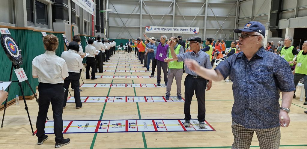 제7회 이천시장배 어르신 한궁대회가 3일 부발종합운동장 이천시 눈높이 배드민턴 체육관에서 선수단 및 내빈 280여명이 참석한 가운데 개최됐다.한궁은 우리나라의 전통놀이인 투호와 전통무예인 궁도의 장점을 적용한 스포츠로, 2.5m의 전방 표적을 향해 좌우로 5회씩 한궁핀을 던져 획득한 점수로 승부를 가리는 활동이다.