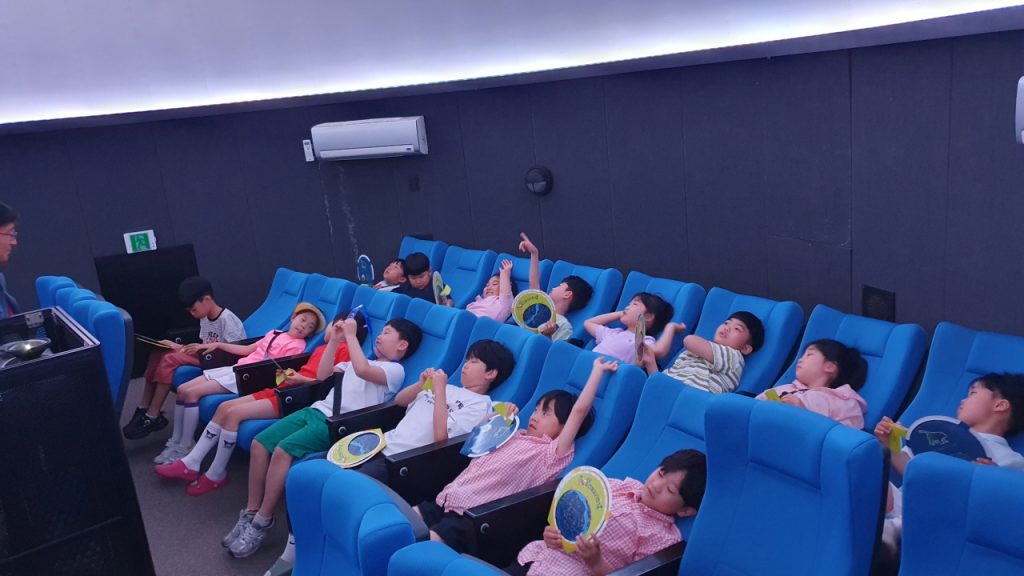 ‘여름철 별자리’를 주제로 별자리의 기원과 여름 밤하늘의 대표적인 별자리를 찾는 방법을 알아보는 시청각 학습에 이어 천체투영관에서 실제 밤하늘의 별자리를 축소해 놓은 영상학습으로 재미를 더한다.