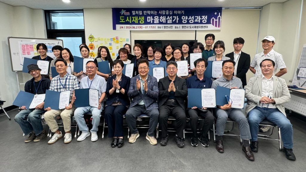 영천시는 지난 17일 시민 33명이 참석한 가운데 도시재생 주민역량 강화사업의 일환인 도시재생 투어 프로그램 및 마을해설가 양성 교육의 수료식을 개최했다.