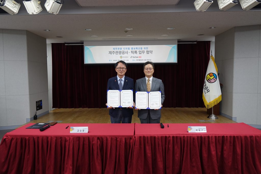 제주특별자치도와 제주관광공사(사장 고승철)는 19일 제주웰컴센터에서 MZ세대들이 주로 사용하는 글로벌 엔터테인먼트 플랫폼인 틱톡(TikTok)과 업무협약(MOU)을 체결했다.