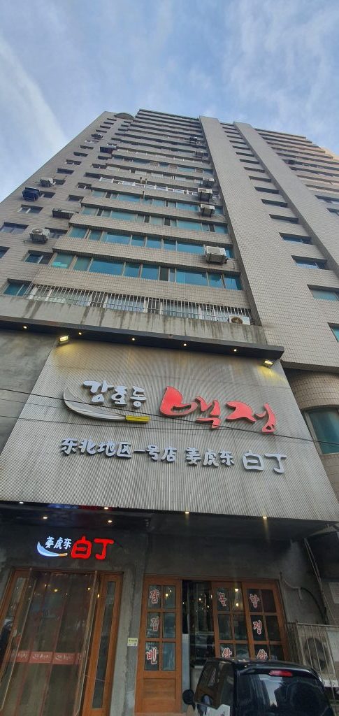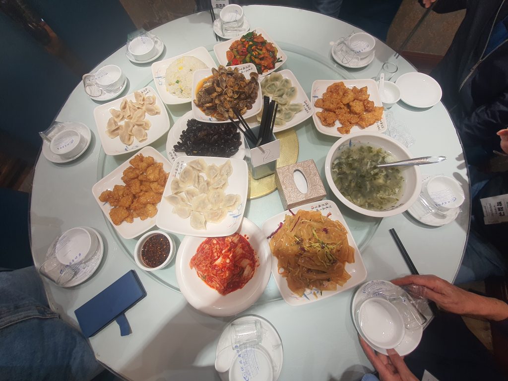 저녁 만찬은 다양한 중국 음식을 기대 했는데 뜻밖에 한국식 삽겹살구이다. 간판도 ‘강호동 백정’으로 익살스럽게 한국어로 표기 했다. 삽겹살과 김치찌게 등 한국식 유사한 식단이다. 식사 후 전통시장 포장마차에서 바이주(白酒)와 맥주로 피로를 풀고 호텔로 돌아왔다.