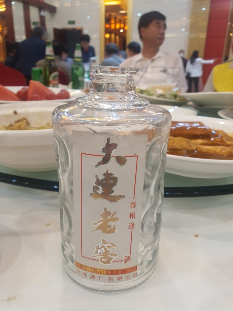 다렌 시내 대중식당 해리방(海里搒)에서 중국술(사진)을 한잔 곁들이며 식사를 한 후 대련 스위스호텔에 여장을 풀었다. 2인 1실로 「골프먼스리」 조성수 대표와 룸 배정을 받았다. 호텔 맞은편에 노동공원(劳动公园)이 위치하고 있어 우리 방에서 창문으로 야경을 감상할 수 있었다. 호텔 7층 연회장에서 발행인 세미나를 개최한 후 만찬이 진행됐다.