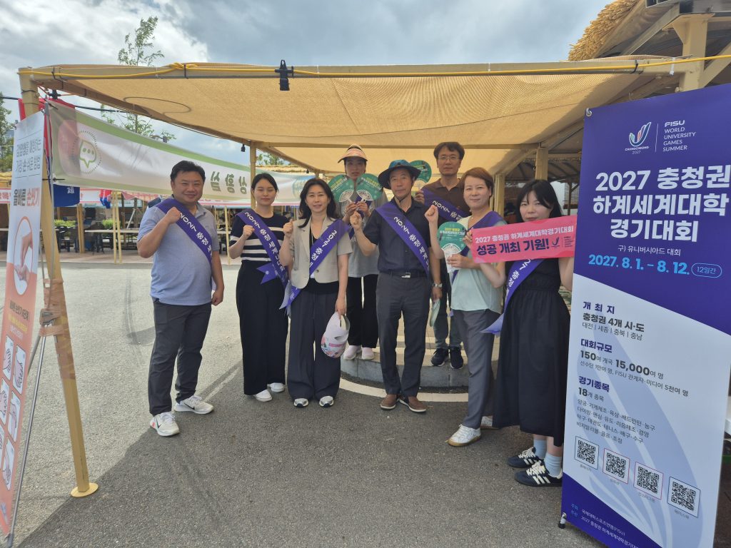 2027 충청권 하계세계대학경기대회 조직위원회(위원장 강창희, 이하 조직위)는 7월 26일「제22회 세종 조치원복숭아축제」개막 행사장에서 방문객을 대상으로 홍보활동을 펼쳤다.