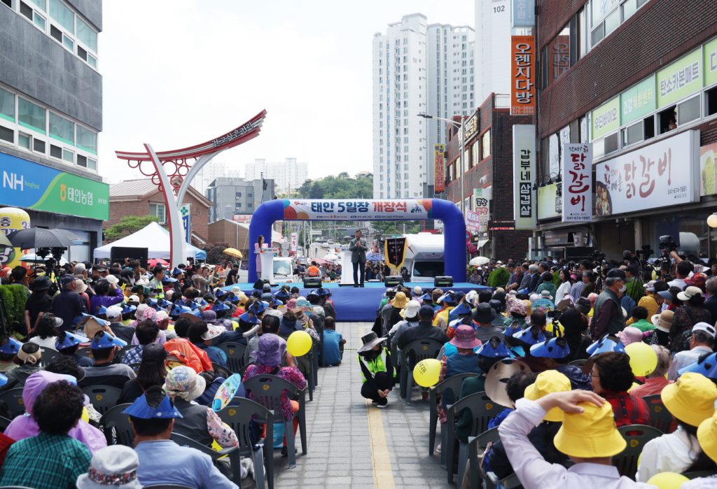 대형마트와 온라인 쇼핑의 성장, 그리고 지방소멸의 위기 속에서 35년 만에 태안읍에 문을 연 태안 오일장은 6월 8일 첫 개장일 무려 5천여 명이 몰리는 성황 속에 역사적인 새출발을 알렸으며 매달 끝자리 3·8일마다 운영되고 있다.