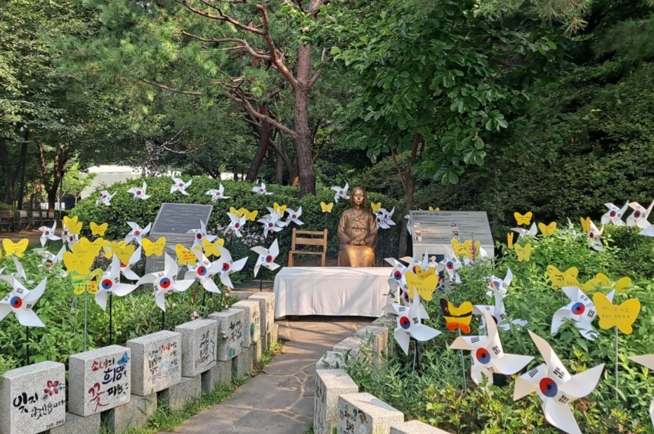 노랑나비 청소년 기획단은 지난 12일 위안부 피해자의 아픔을 이해하고 애국심을 고취하기 위해 태극기와 노랑나비 조형물을 만들어 소녀상 주변을 가꾸는 시간도 가졌다.