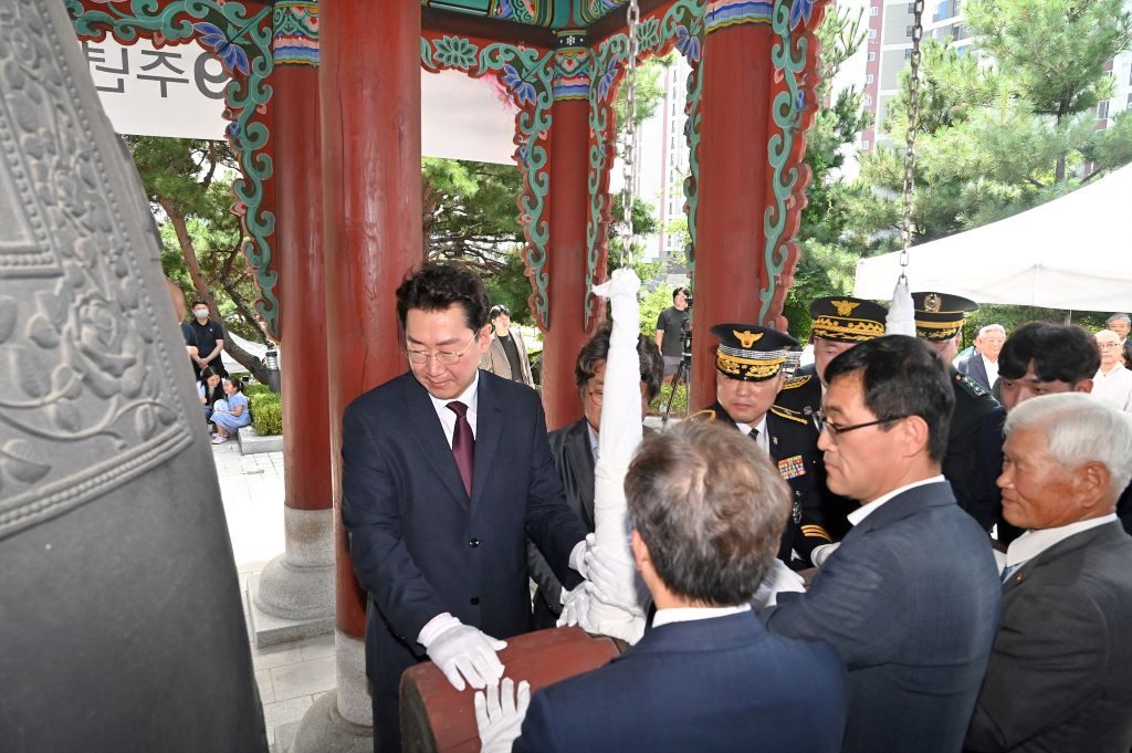 원주시는 제79주년 광복절을 맞아 조국 독립을 위해 희생하신 선열들의 숭고한 뜻을 새기고 애국애족 정신을 고취하기 위해 광복절 기념 치악의 종 타종식을 개최했다.