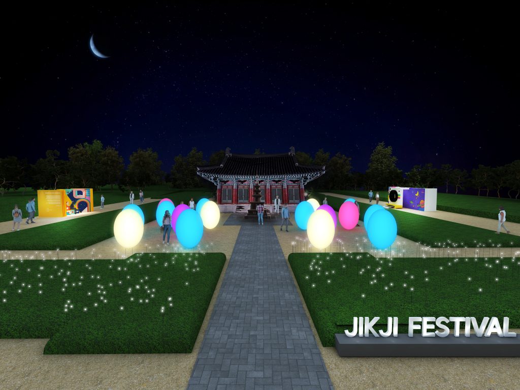 흥덕사지 절터를 복원한 금당에서는 야경전시 ‘빛 내려온다! 흥덕사지의 밤’가 펼쳐진다. 인류문명의 빛인 금속활자와 금속활자로 만든 직지가 어두운 세상에 희망의 빛을 전하는 것을 모티브로 구성했다.