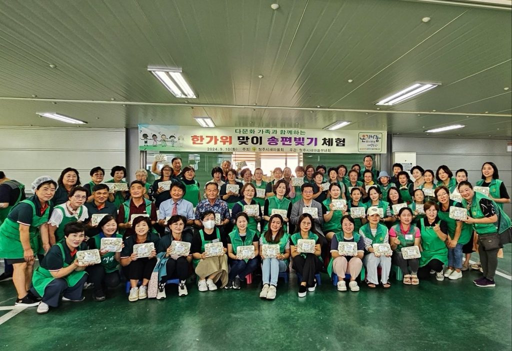 청주시새마을부녀회(회장 박홍정)는 고유명절인 추석을 맞이해 10일 오전 청주시새마을회관에서 새마을부녀회원과 다문화 가족 등 70여명이 참여한 가운데 ‘한가위 송편빚기 체험’을 진행했다.