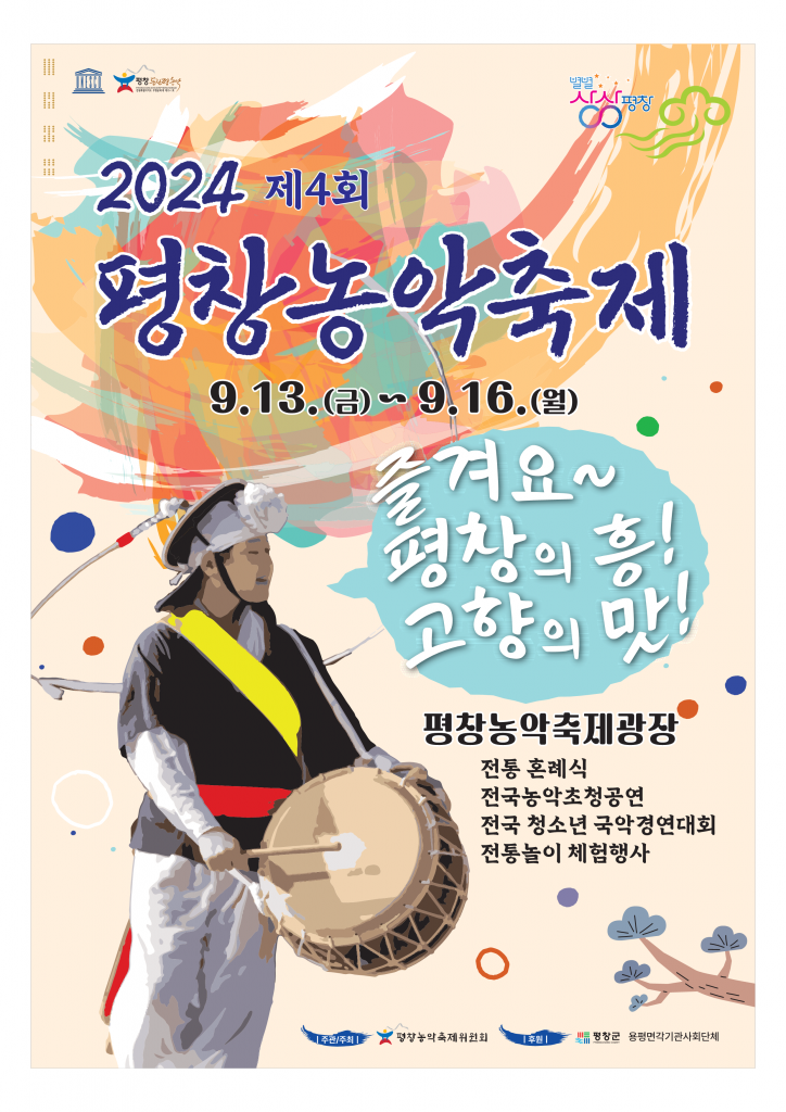 이달 13일부터 16일까지 2024 평창농악축제가 용평면 장평리 전통민속상설공연장 일원에서 4일간 개최된다.