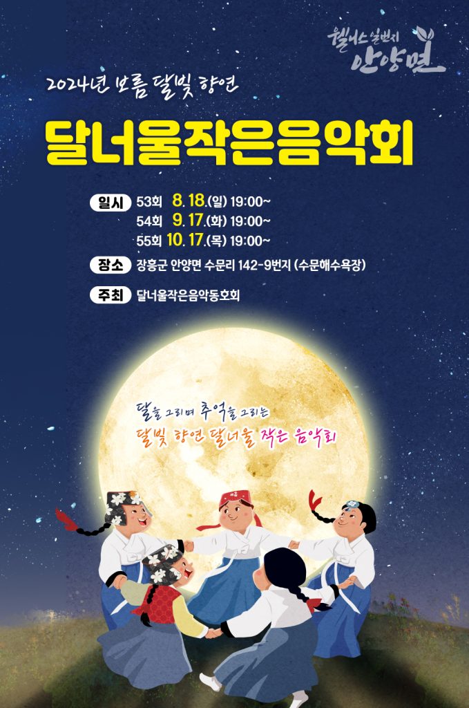 장흥군은 오는 17일 추석 명절 저녁 7시부터 안양면 수문해수욕장서 ‘제54회 달너울 작은음악회’가 열린다고 전했다.
