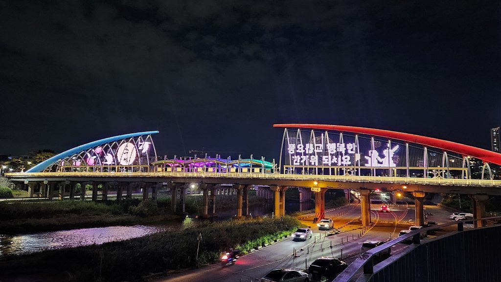 이외에도 시는 다소 어두웠던 서문교 보행공간에는 컬러 투광조명과 고보조명, 라인조명 등을 설치해, 야간에도 안전하고 온화한 수변감성을 느낄 수 있도록 조성했다.