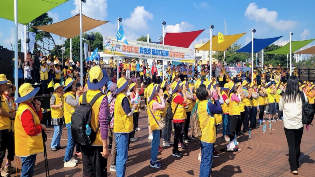 13개 읍‧면에서 활동 중인 100세 건강위원회 연합회가 주최한 이번 행사는 탑정호 음악분수에서 출발해 데크길과 출렁다리를 건너서 돌아오는 탑정호 출렁다리 소풍길 4.1km 코스로 진행됐다.