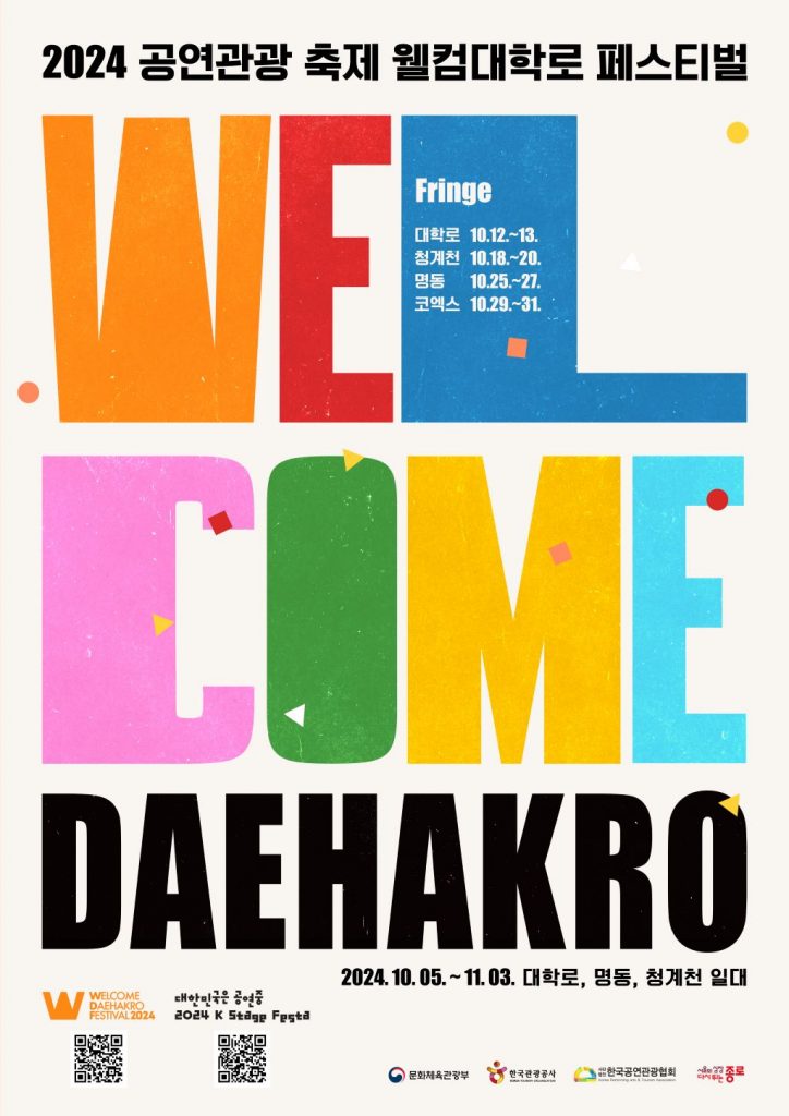 국내 공연관광 대표 축제 ‘2024 웰컴대학로(이하 웰컴대학로)’가 오는 5일부터 11월 3일까지 명동, 청계천 등 서울 곳곳에서 펼쳐진다.