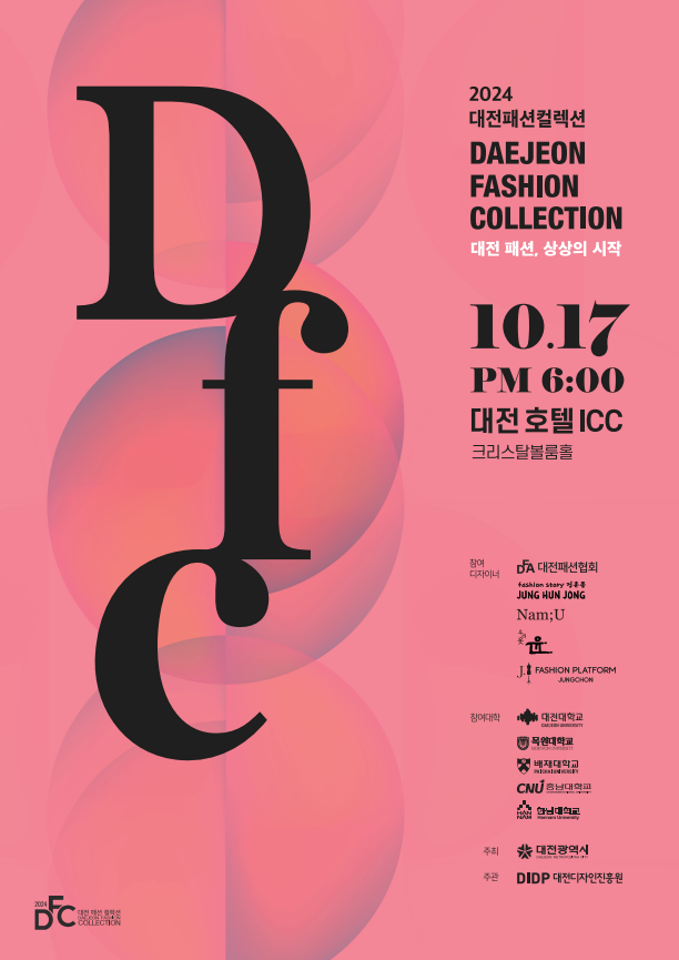 대전지역 패션산업을 이끄는 전문디자이너와 5개 대학 패션학과 재학생들과의 협업으로 진행되는 대전•충청권의 대표적인 패션쇼인 ‘2024 대전패션컬렉션’이 오는 10월 17일,호텔 ICC에서 열린다.