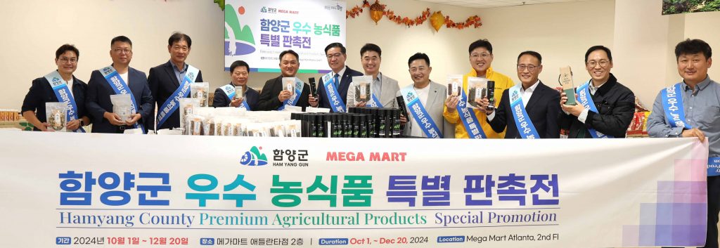 미국 시장 개척에 나선 함양군 시장 개척단이 애틀랜타 메가마트 판촉 행사를 통해 함양 농식품을 선보이며 현지 소비자들에게 큰 인기를 끌었다.