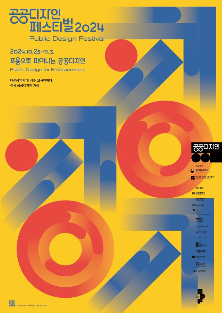 문화체육관광부(장관 유인촌, 이하 문체부)는 한국공예·디자인문화진흥원(원장 장동광, 이하 공진원)과 함께 10월 25일부터 11월 3일까지 대전을 중심으로 전국 180여 곳에서 ‘공공디자인 페스티벌 2024’를 개최한다. 용호성 제1차관은 10월 25일, 코사이어티(서울 성동구)에서 열리는 개막식에 참석해 올해 대통령상으로 격상된 ‘2024 대한민국 공공디자인대상’을 시상하고 공공디자인 관계자들을 격려할 예정이다.