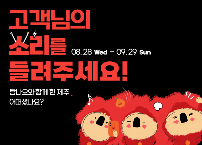 8월 28일부터 9월 30일까지 한 달간 진행된 이번 만족도조사는 최근 1년 내 탐나오 이용고객 및 탐나오에 입점되어 있는 제주도 관광사업체 중 최근 1년 내 고객결제가 이루어진 적 있는 입점업체 대상으로 실시되었다.