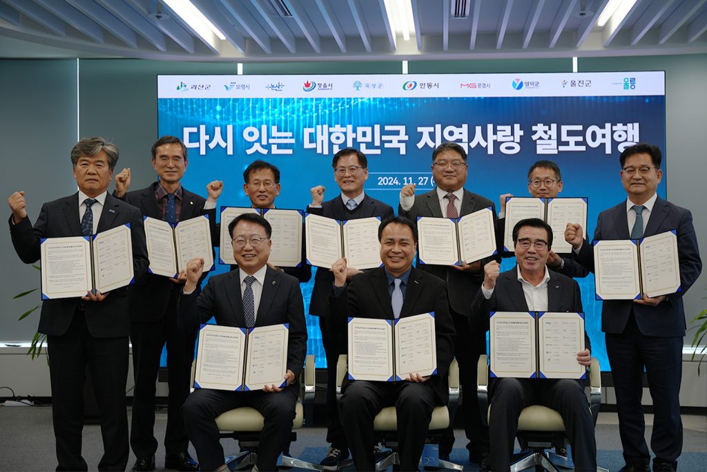 안동시는 11월 27일(수) 한국철도공사와 인구감소지역 철도관광 활성화를 위한 업무협약을 대전 한국철도공사 사옥에서 체결했다.