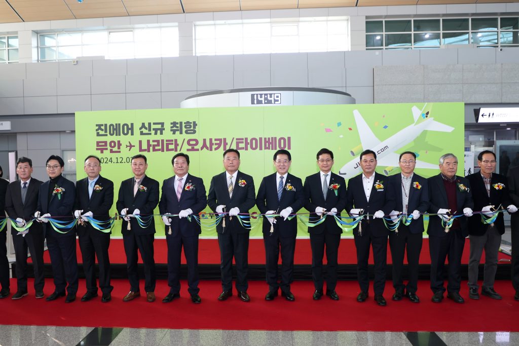 전남 무안군(군수 김산)은 2일 무안국제공항에서 진에어의 데일리 국제 정기노선 운항을 기념하는 취항식을 열었다.