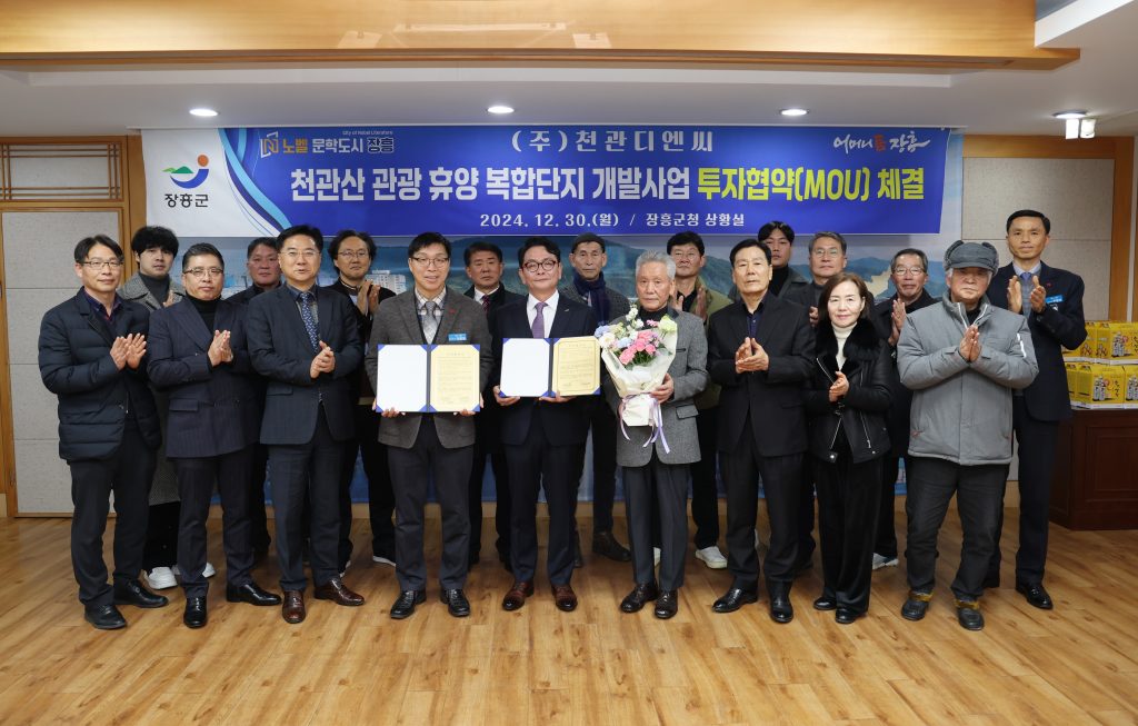 장흥군은 지난 12월 30일 ㈜천관디엔씨와 ‘천관산 관광·휴양 복합단지 개발사업’ 투자협약을 체결했다고 밝혔다.