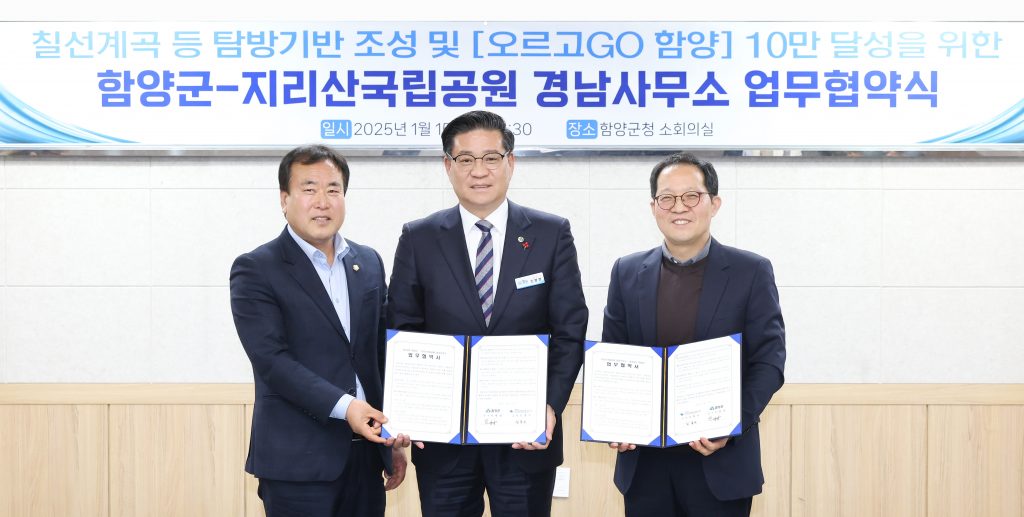 협약식에는 진병영 함양군수, 김종식 지리산국립공원 경남사무소장, 김윤택 함양군의회 의장 등 관계자 15여 명이 참석해 협력 의지를 다졌다.